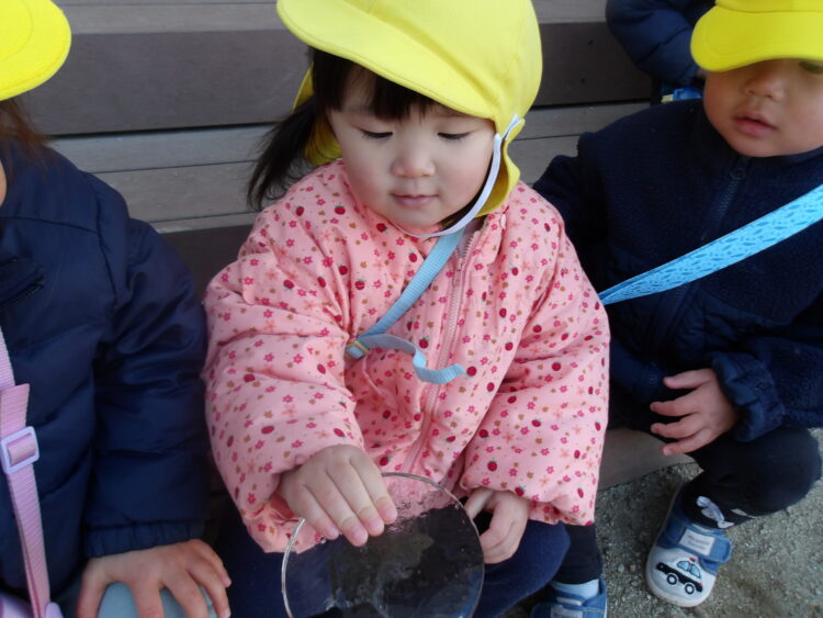 園に帰り昨日から作っていた、氷を触ってみることに。