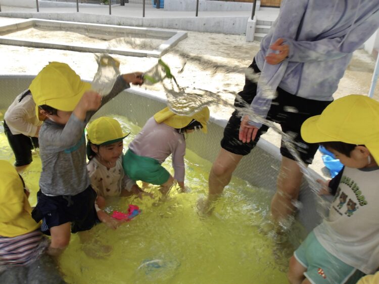 思い切りバタ足をしたり、みんなで水を掛け合ったり、思い切りプールあそびを楽しむことができました!
