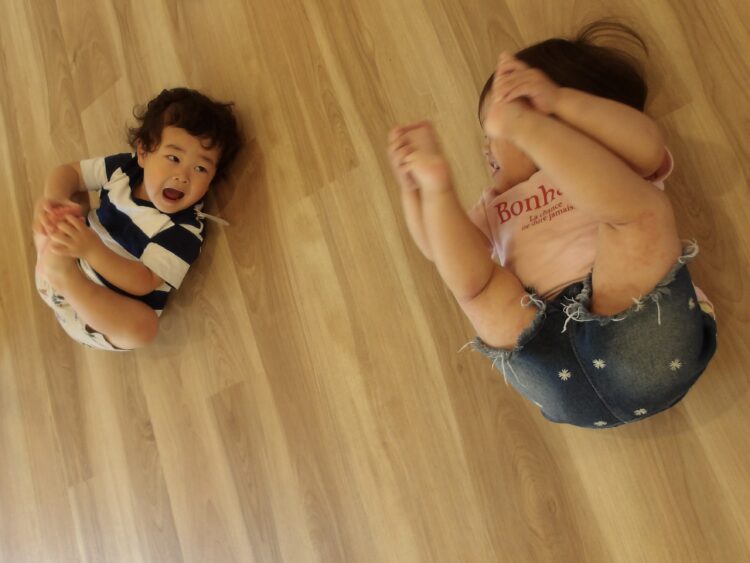 また、お友だちの真似をして、おんなじポーズをとるかわいい姿が😍コロコロと寝転び、おなじポーズで笑い合う、微笑ましい空間でした✨