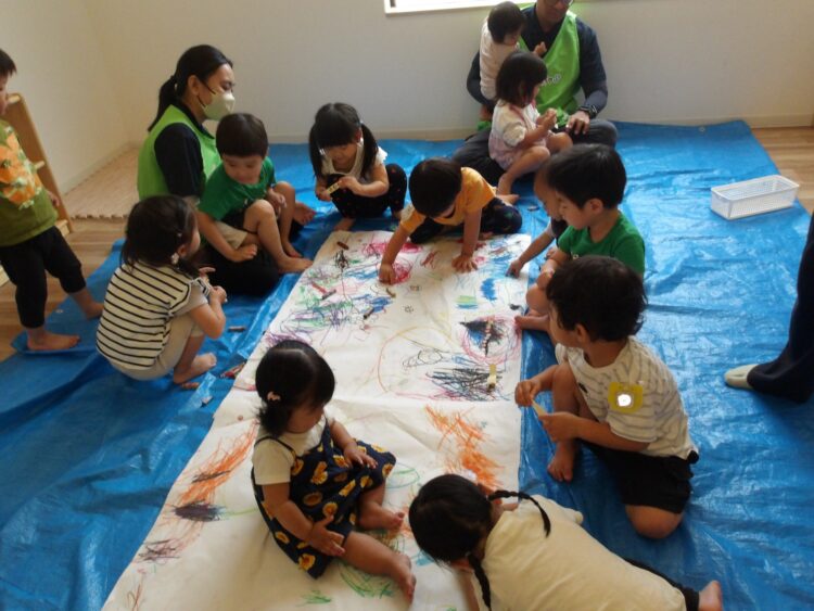 今日はお部屋で大きな紙にお絵描きをして遊びました🖍️