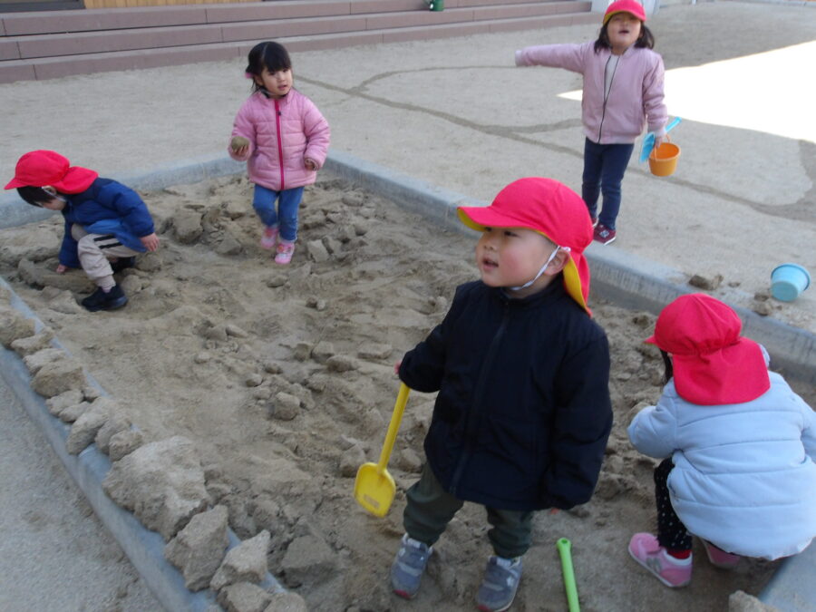 またまたお砂場が凍っていたのでみんなで工事現場ごっこをしました😂