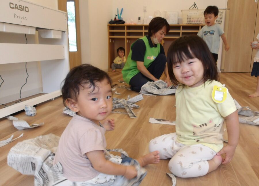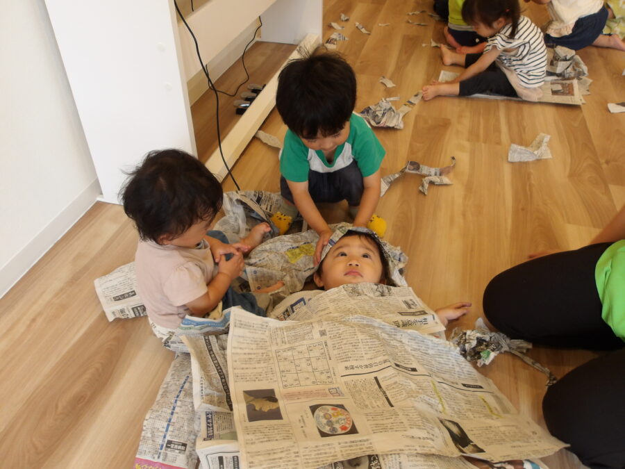 その後はお部屋でリズム遊びでと新聞紙遊びを楽しみました!