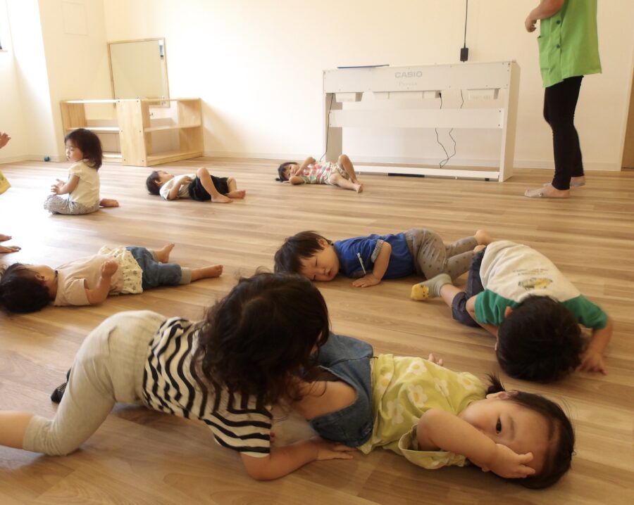 ゴロンと寝転がって少し休憩をしたりみんなピアノのリズムに合わせて体を動かして楽しんでいましたよ