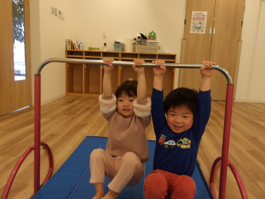 しっかり捕まって〜 「1、2、3〜」 「先生お猿さんだよ🐒」と見せてくれました![]()