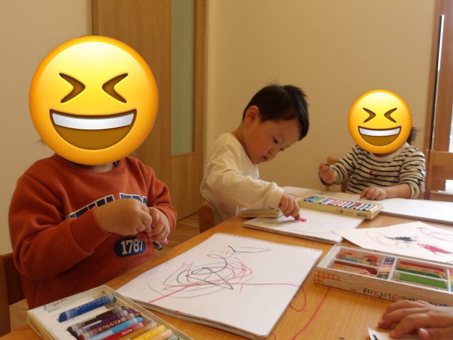 まずはお絵描きコーナー! 自由にお絵描きをして楽しんでいました![]()
