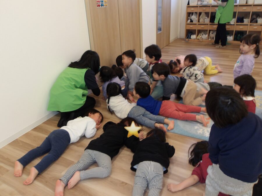 朝のイングリッシュタイムでは、ネイティブの先生の真似をしてゴロンと寝っ転がる姿が可愛らしかったです🥰