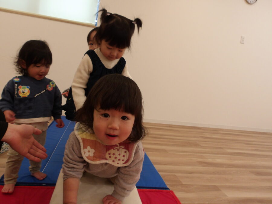 お部屋のお友達はマットのお山や跳び箱に登ったり降りたり楽しく遊びました☺️