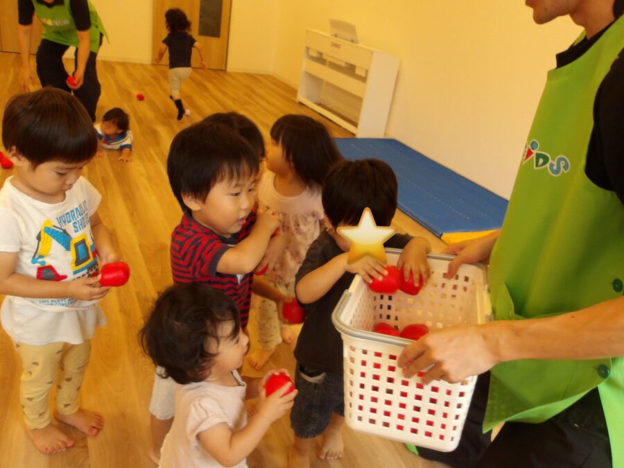 もうひとつのお部屋では、スポーツフェスティバルで幼児クラスのお友だちが行っていた玉入れを行いました✨