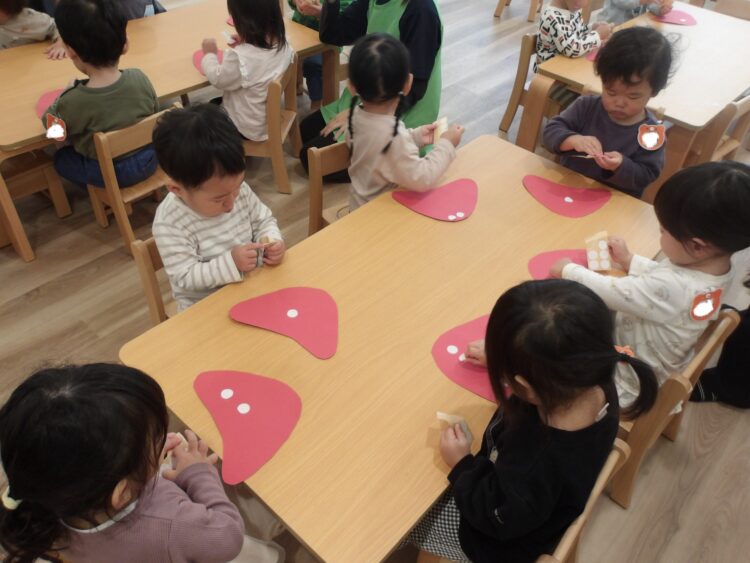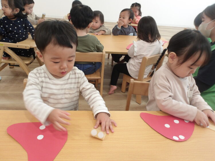 ひよこ組あひる組はきのこの製作をしましたよ。