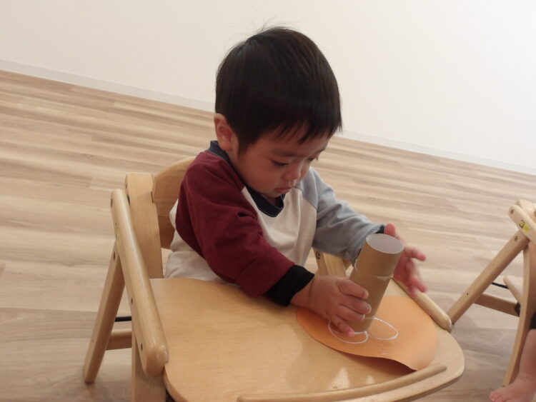 ひよこ組は、芯材を使ってスタンプで模様をつけました!