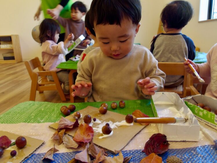 自然物や糊の感触を確かめながら、自分だけの可愛らしい作品が完成しました✨