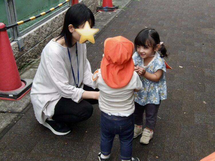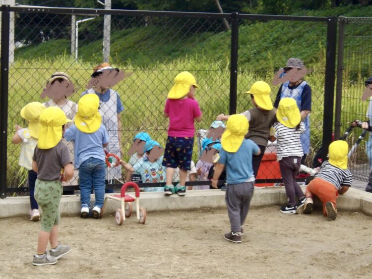 近所の保育園のお友だちがお散歩途中に話しかけてくれました。「どこ行くのー?」「何歳?」と上手に世間話をする子どもたちでした。