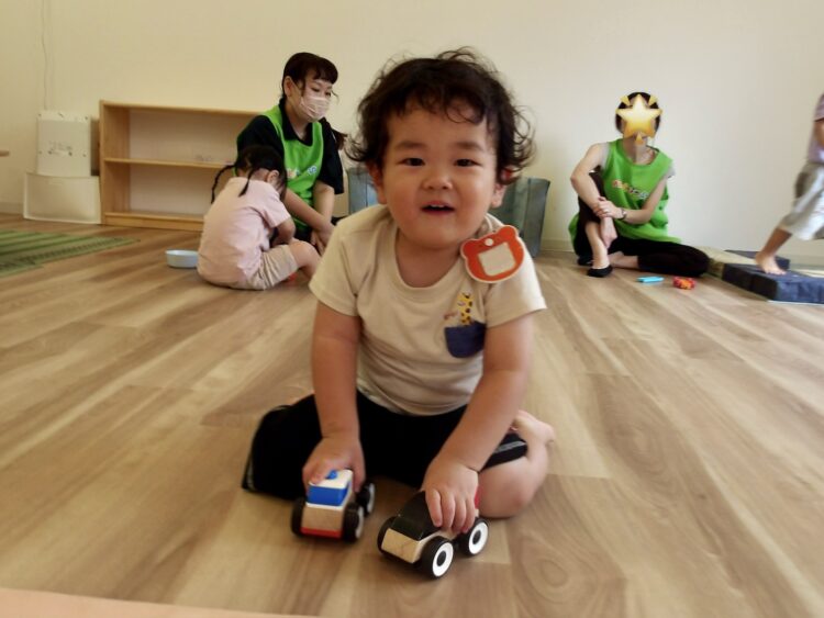 今日はお部屋でのんびり遊びましたよ。少人数だったので好きなおもちゃをゆったりと使って遊ぶ姿が見られました。