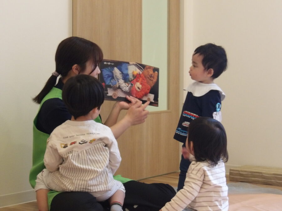 初日ということで、寂しくて泣けてしまう子や、すぐに興味のあるおもちゃを見つけて遊び始める子など、それぞれのペースでゆったりとすごしました。