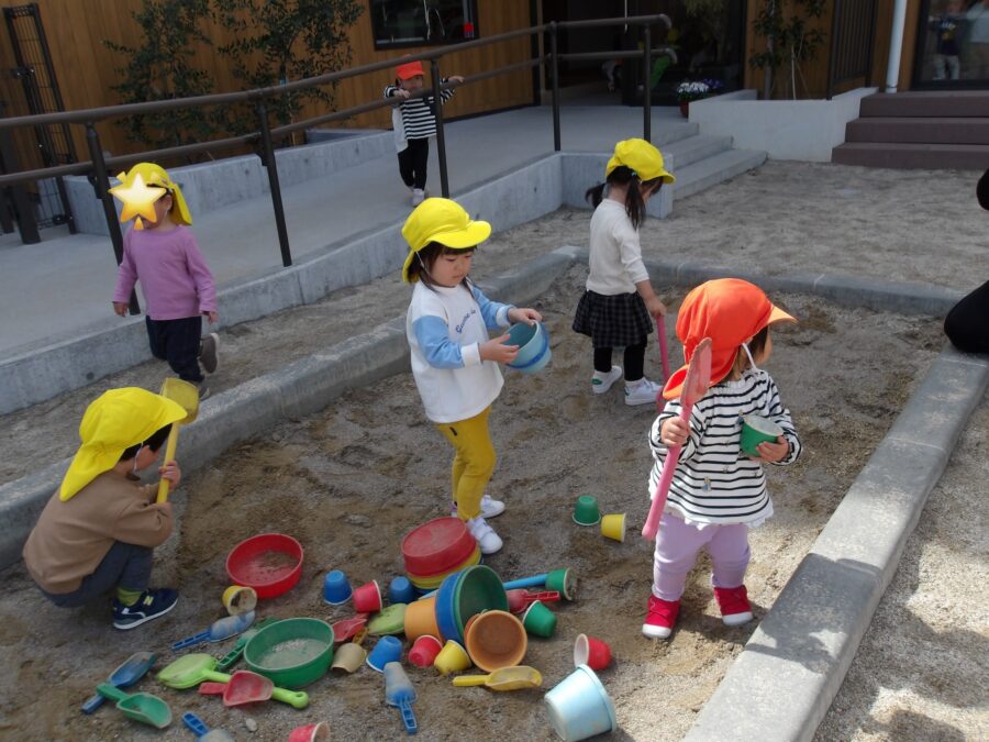 お外に出ると、より一層気分転換になったのか、お友だちと一緒に夢中で砂場あそびやコンビカーを楽しんでいましたよ!