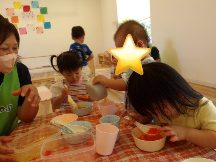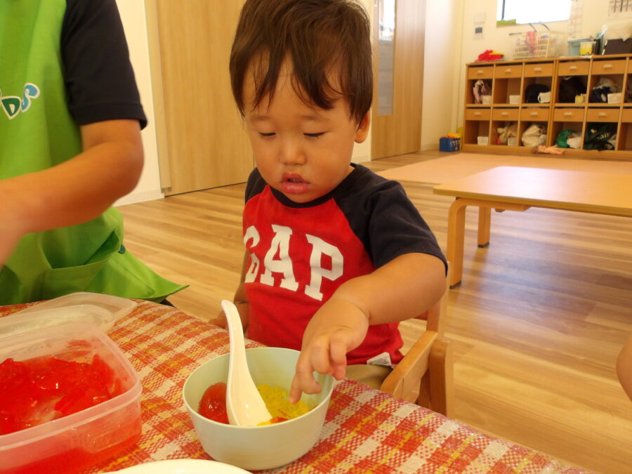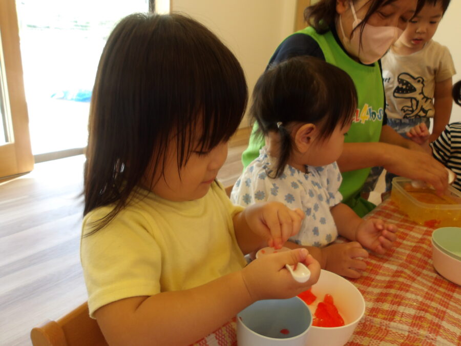 ゼリーを見ると、なんだこれーというような不思議そうな表情を見せてくれた子どもたちです