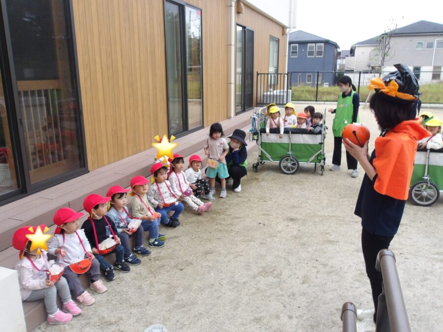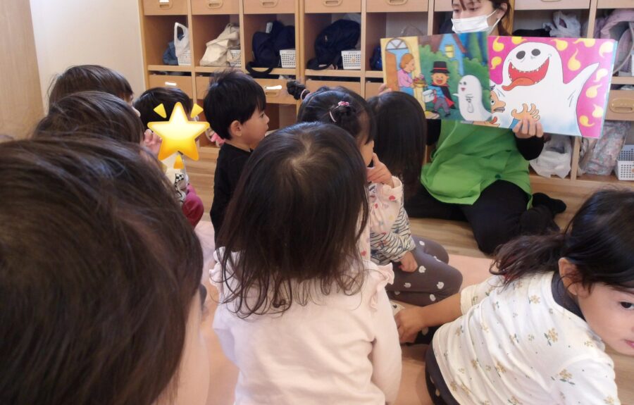 みんなでハロウィンの紙芝居を読んでからお散歩に出発![]()