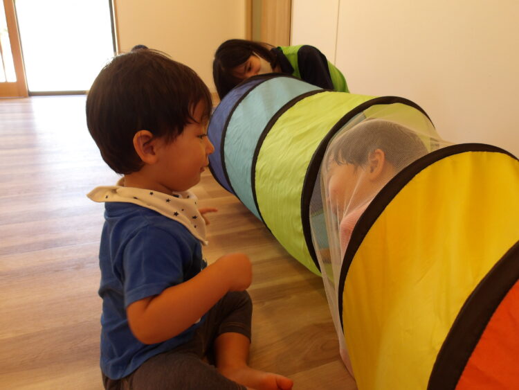 トンネルの中をハイハイで進んでみたり