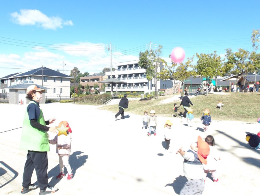 公園につくとお友だちや先生と一緒に追いかけっこをする子や、ボールであそぶ子もいましたよ🤭