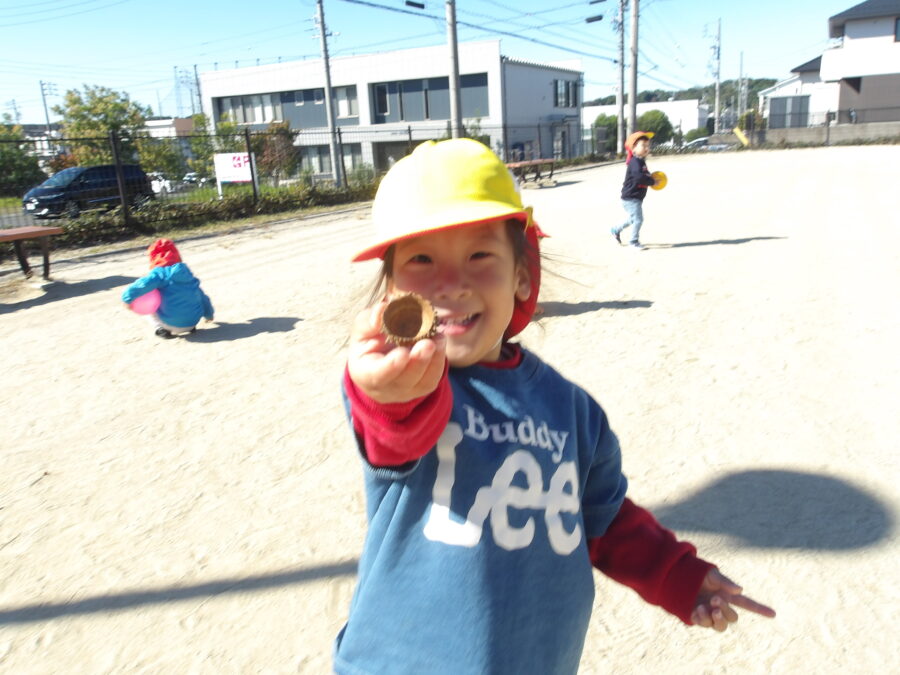 どんぐりやどんぐりの帽子を見つけると、「みて😆」「あった!」と嬉しそうに見せてくれた子どもたちです😌