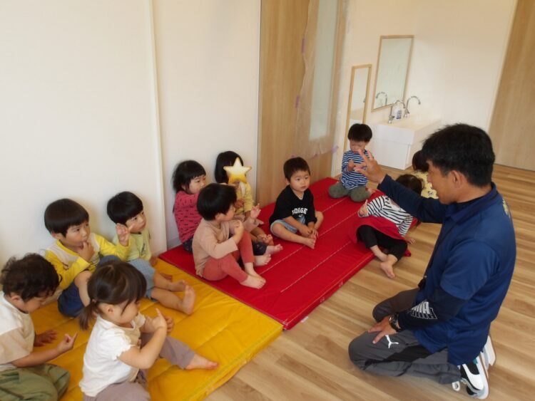 話を聞くときはお山座りが身についてきた子どもたちです👏