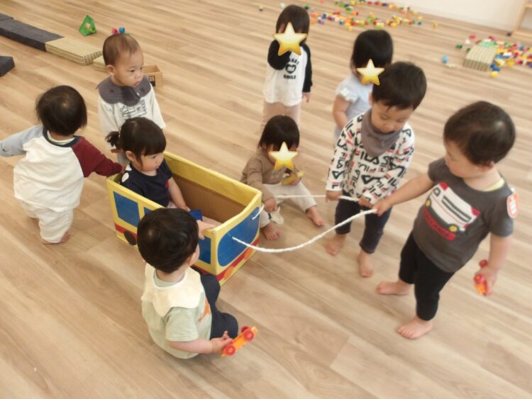 バスが大人気で、乗ったり運転手になったりと交代で楽しむ子どもたちでした☺️