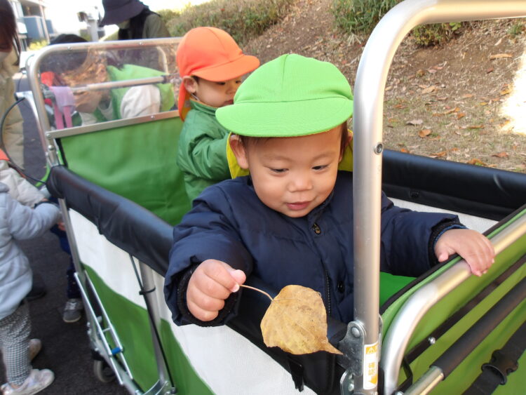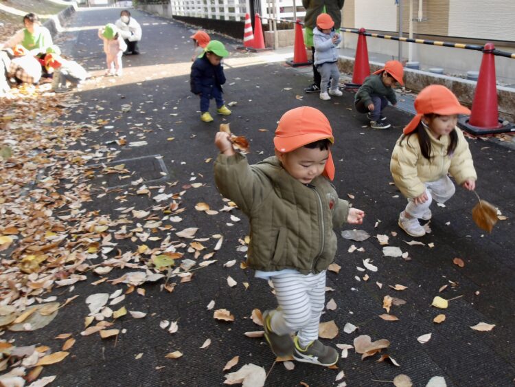 昨日同様みんなでシャワーにしたり、カサカサと踏んで感触を楽しみながらお散歩しました。