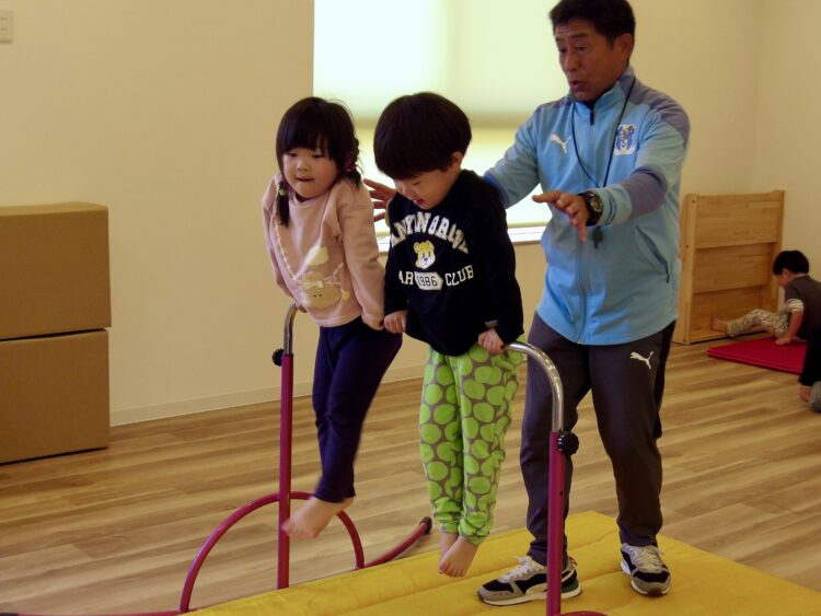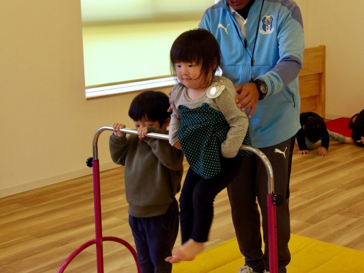 手をピン!と張って一生懸命取り組みました。少し高さが怖かったですが、勇気を出して頑張っていましたよ。