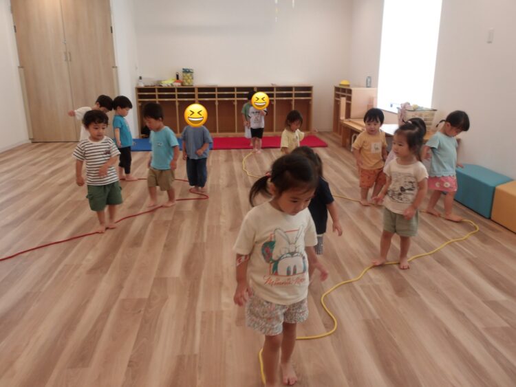今度はロープの上を越えたり、くっぐったり自分が出来る通り方でロープを渡りました!