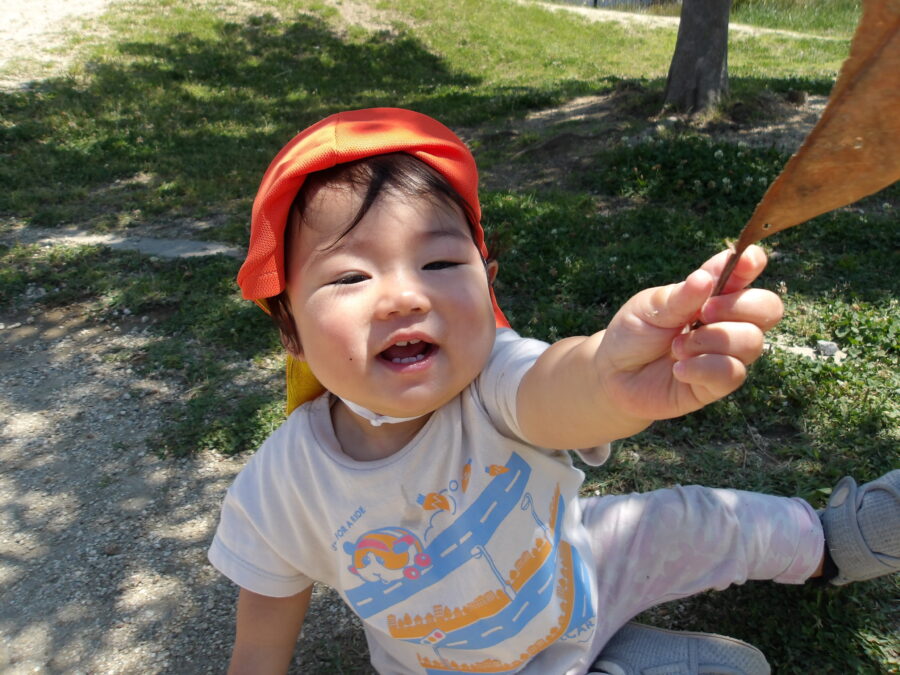 見てみて。葉っぱを拾ったよ☺️