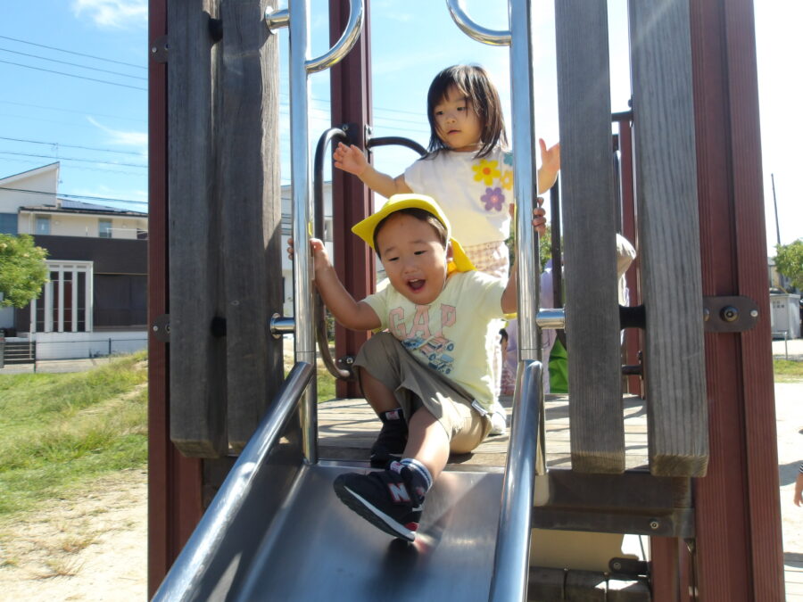 滑り台を滑ったり