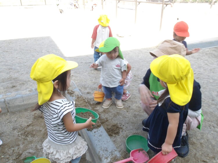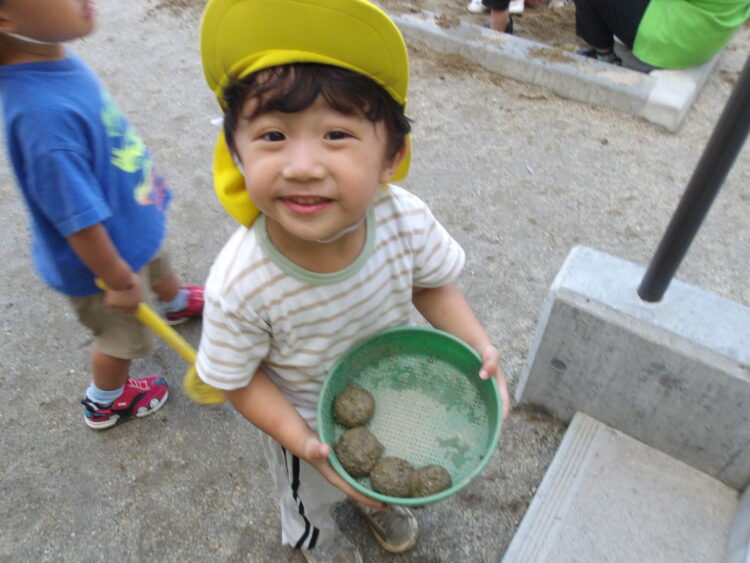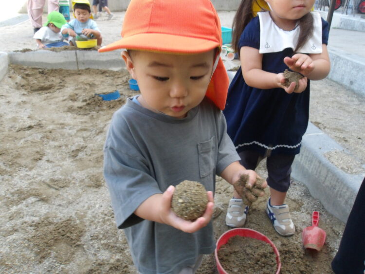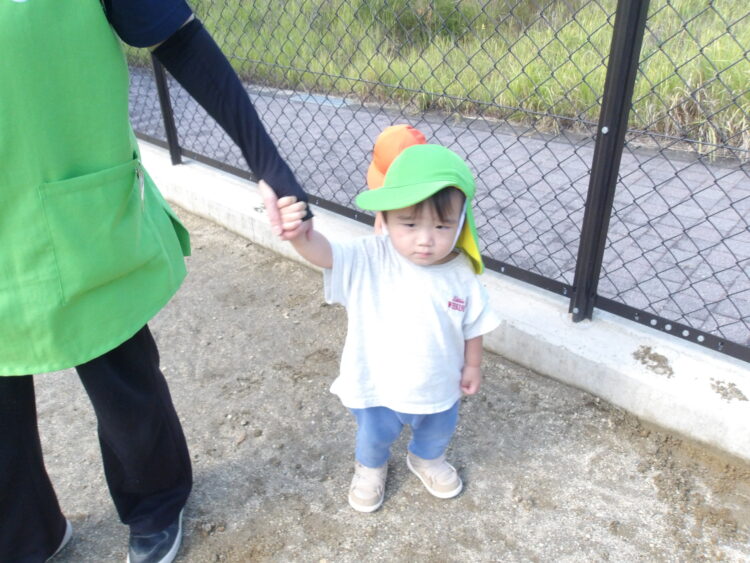 園庭でもお友だちや保育者とのやりとりを楽しんでいました。