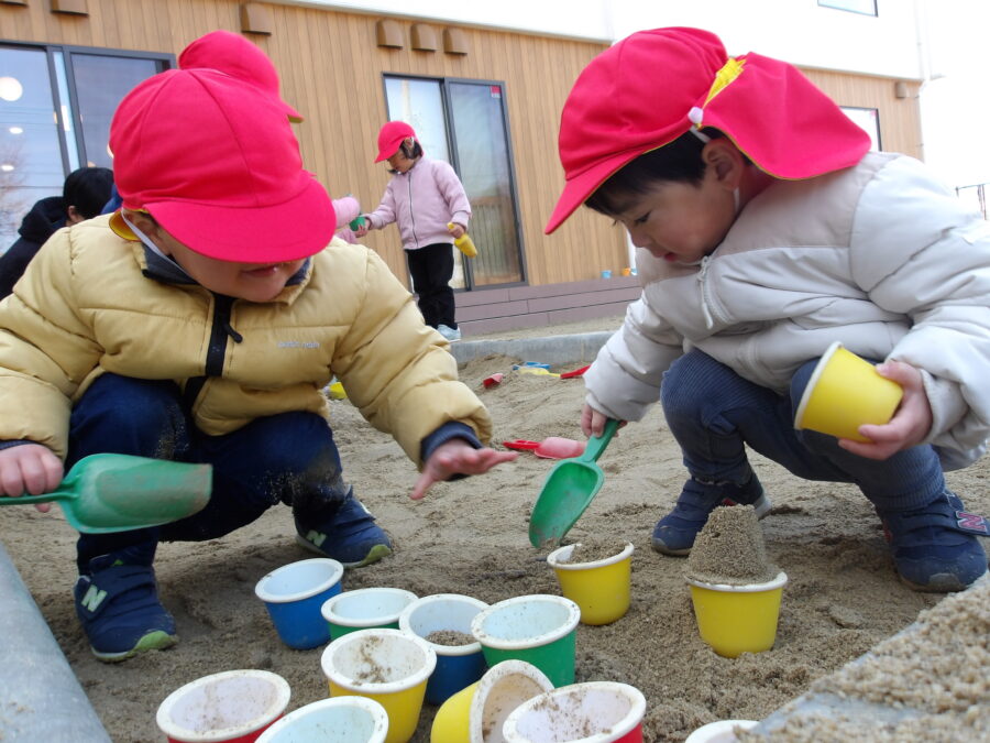 お砂場では、ケーキ屋さんが開かれていたりお友だちと協力して、お山を作ったりする姿が見られました😊
