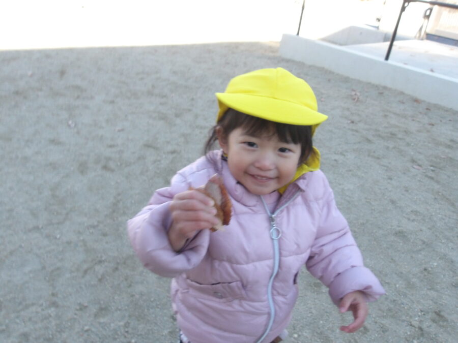 また、今日は風が強く、強い風が吹くと道路側の木の枯れ葉が沢山飛んで来て飛んで来る枯れ葉を空中で一生懸命キャッチしようとする子どもたちの姿が見られました