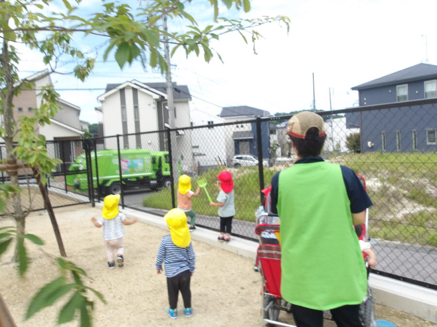 今日は保育園の近くにゴミ収集車が来てくれてみんな嬉しそうに手を振っていました![]()