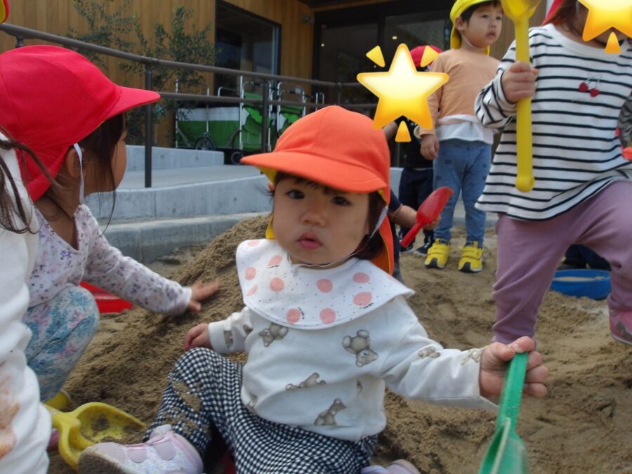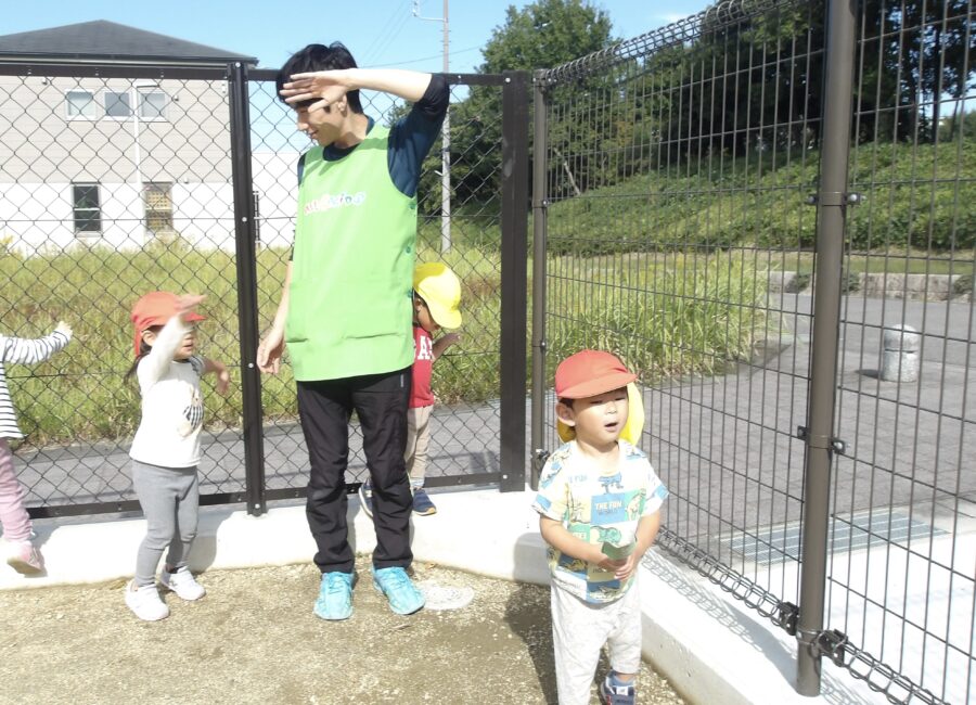 園庭からクレーン車を観察したり!「わー!おおきいね!」とみんな大興奮でした![]()