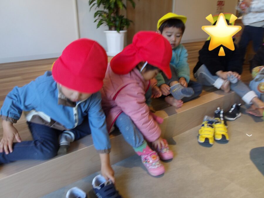 衣服の着方や靴の履き方を簡単な言葉で伝えながら一緒に行うことで、少しずつ自分でもやってみよう!という姿へ繋がっているようです