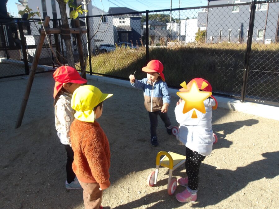 今日はとても良い天気だったので園庭で遊びました!