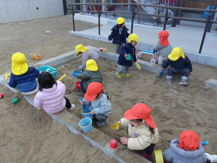 お砂場では、思い思いに好きなものを作って楽しむ姿が見られました😌