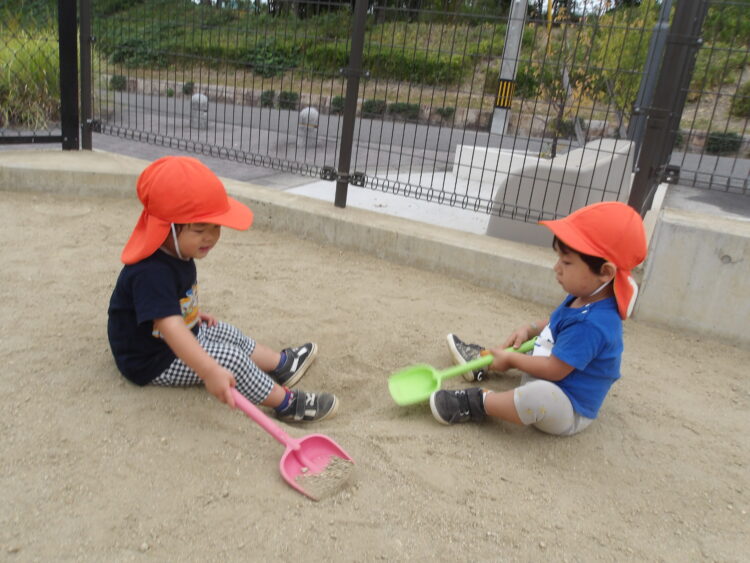 仲良くお話をしながらお砂で遊んでいる姿が!