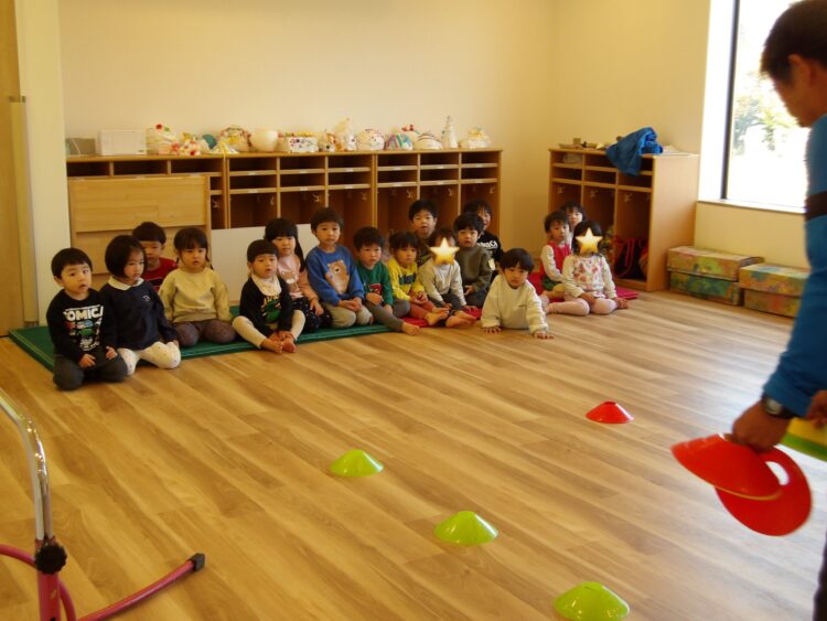 先生の話に集中して聞き入る子どもたちです。難しいルールやお約束も以前よりしっかり座って聞いて、理解できるようになってきました!
