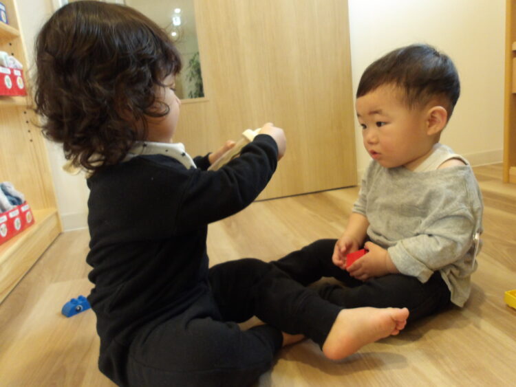 最近はお外あそびが多かったですが、室内あそびでもお友だちと一緒にあそぶ姿がありますよ。