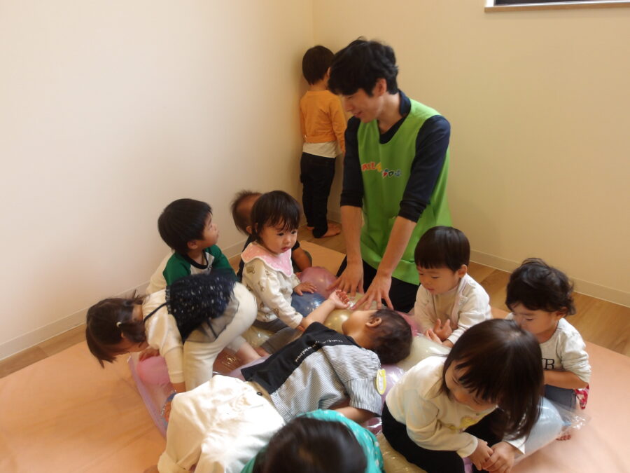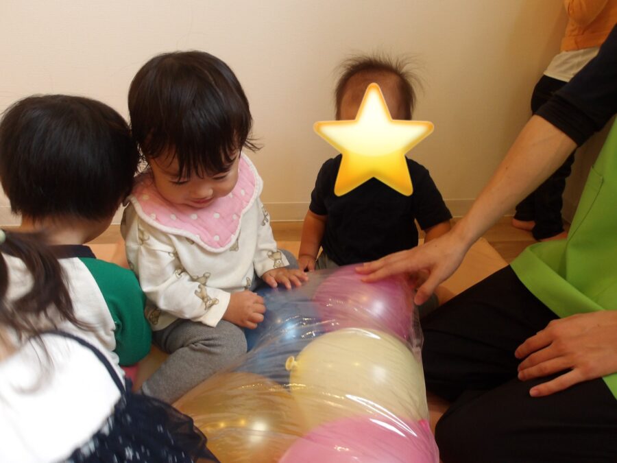 風船マットを出すとみんな「きゃー!」と大興奮で遊んでいました![]()