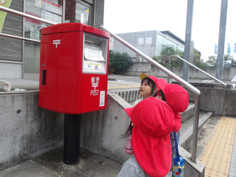郵便局ではポストに興味津々!背伸びをしたり近くで見てみたりと楽しんでいましたよ![]()