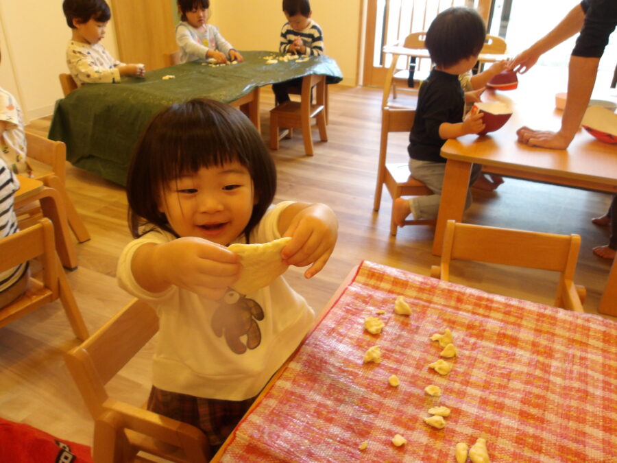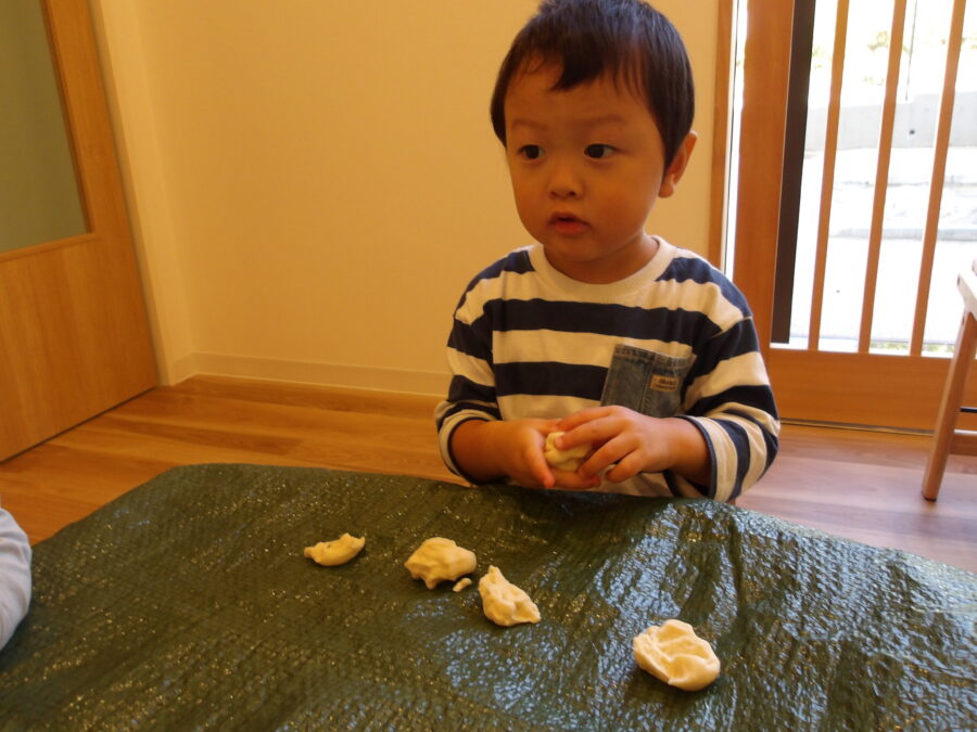 みんなそれぞれ柔らかな粘土の感触を楽しみながら遊んでいました![]()
