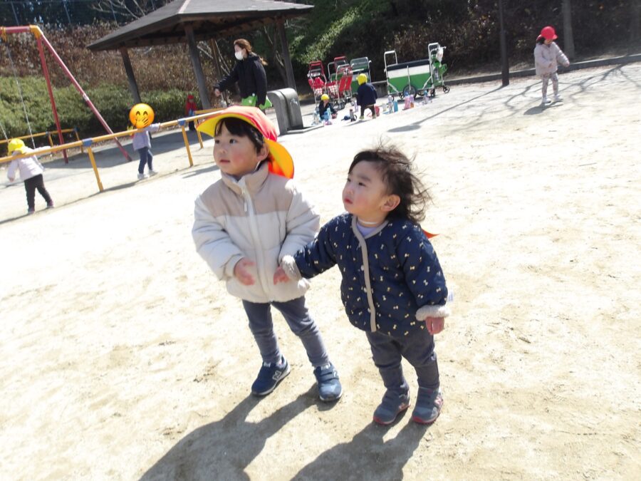 風が強かったのでシャボン玉がよく飛び「あああ〜😄」とみんなで追いかけっこしました😂