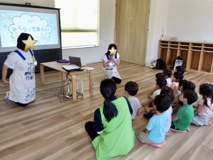 うさぎ組は、ビオレの手洗い指導に参加しました。