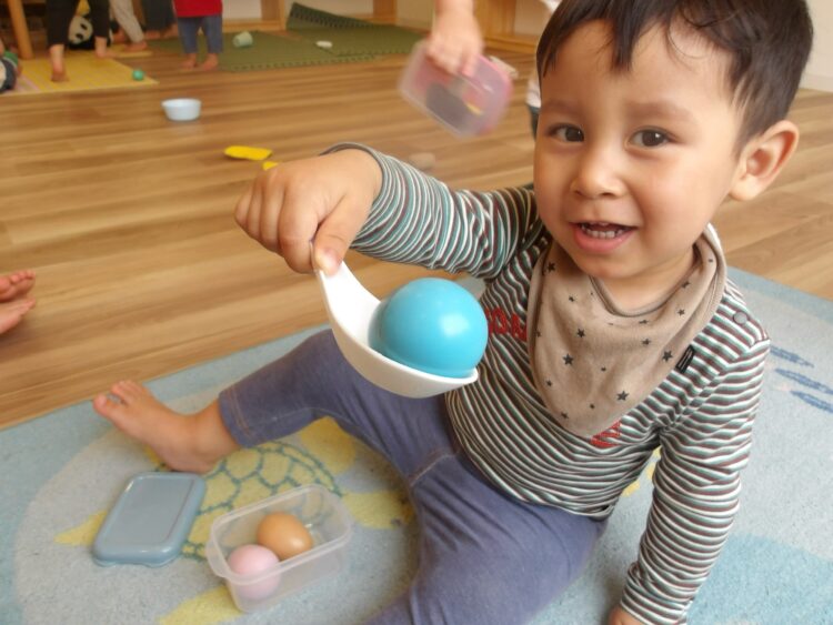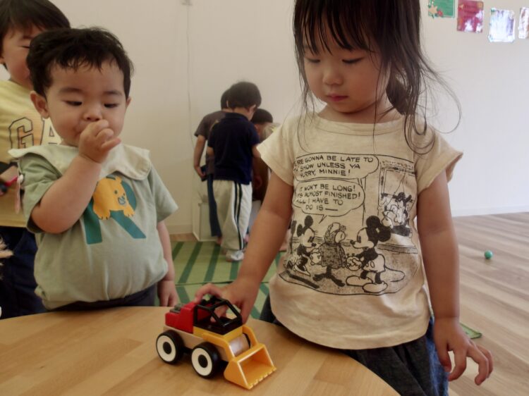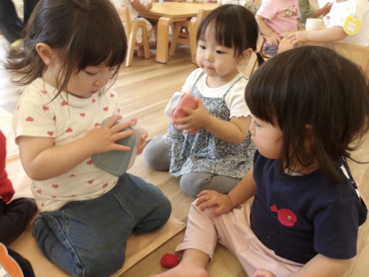 おもちゃを横取りせず「かして」って言ってみようね、おもちゃは投げたりお友だちに叩いたりせず、大事に使おうね。と話すと、とても真剣に聞いてくれました。
