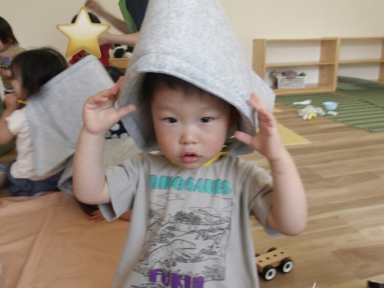 楽しく遊んでいると避難訓練が始まりました!突然の放送にびっくりしつつも、きちんと先生のお話を聞いて避難することができましたよ。