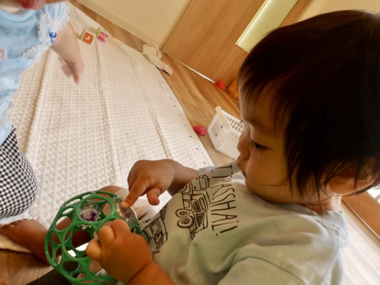 窓の外の景色を眺めたり、おもちゃでじっくりとあそびましたよ。